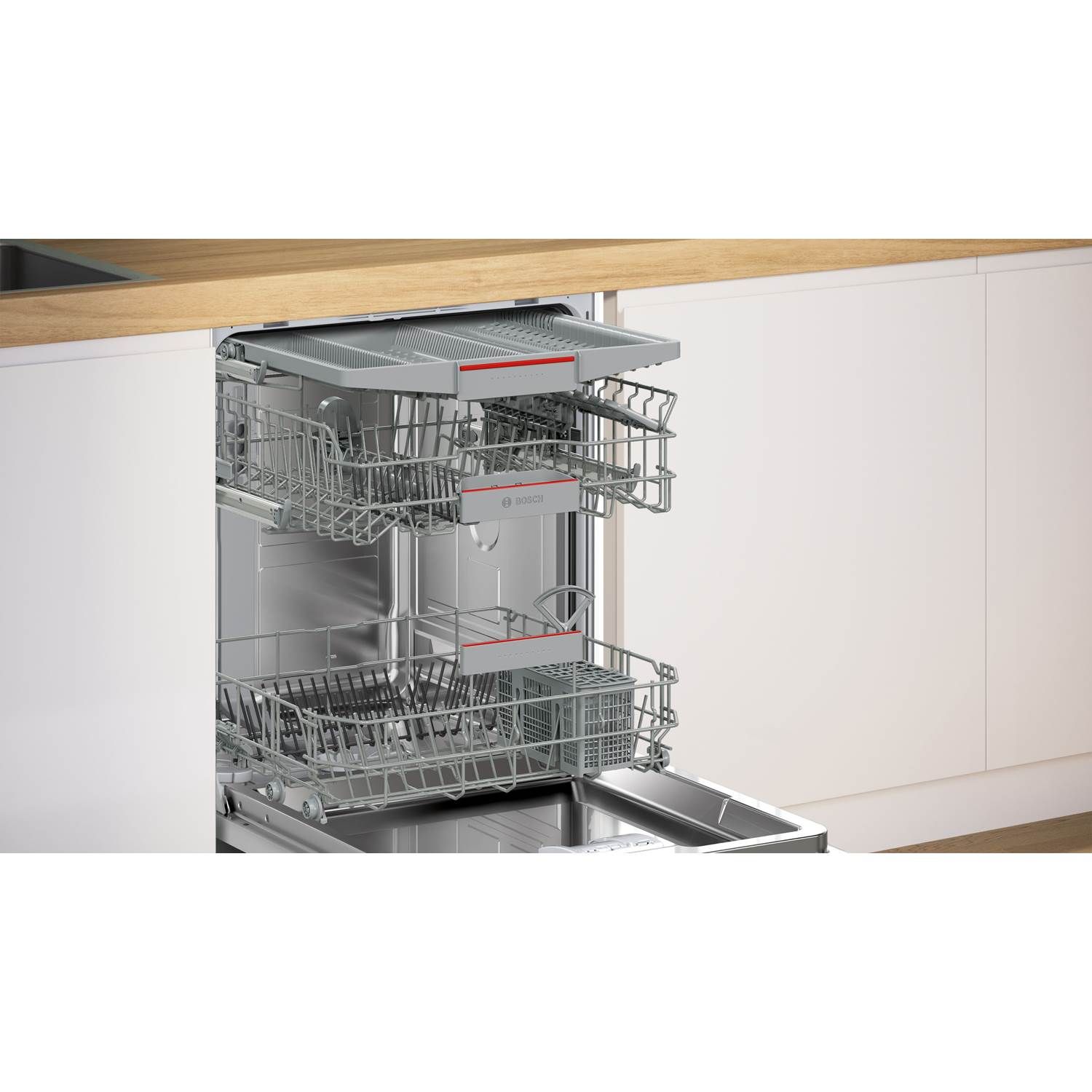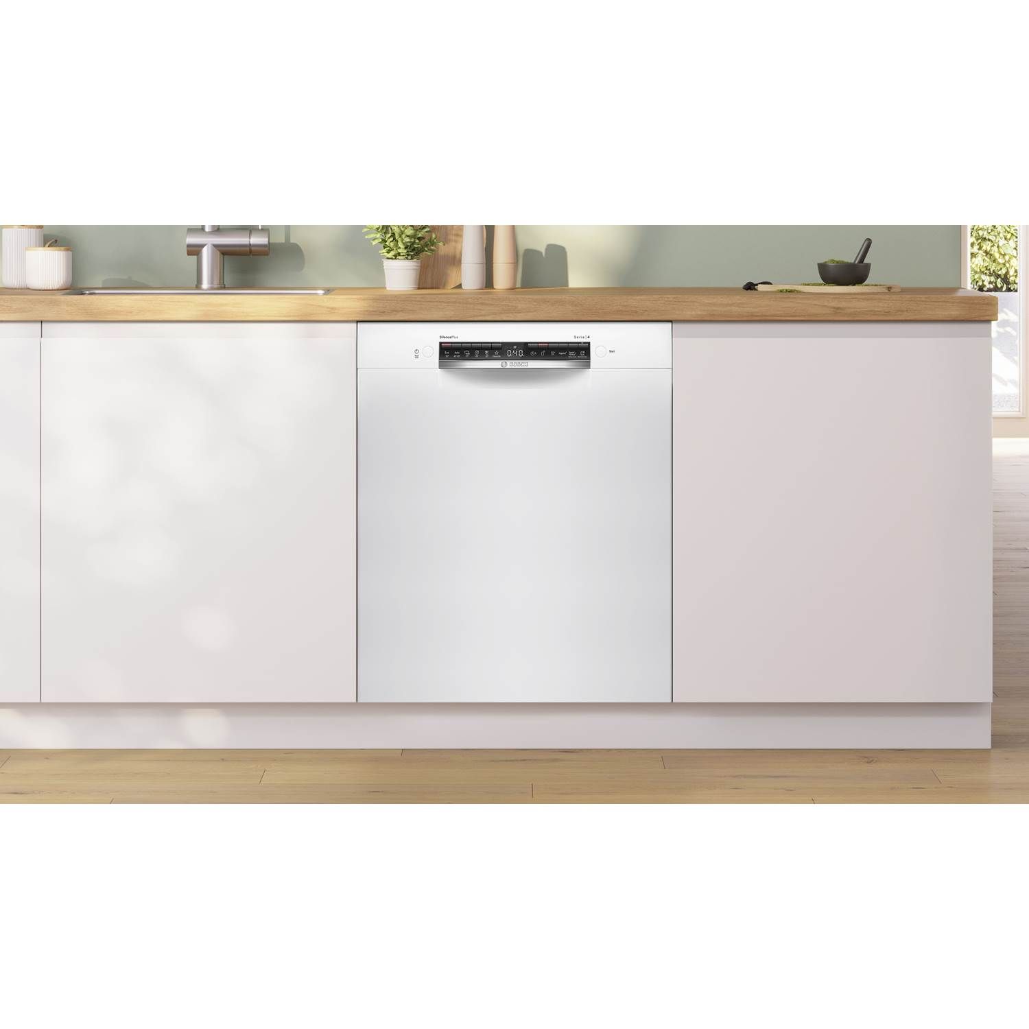 SMU4HMW02S har noget, der hedder Silence Plus, hvilket gør den til en bemærkelsesværdig støjsvag opvaskemaskine på 42 dB. Det betyder, at du nemt kan have opvaskemaskinen tændt, hvis du har en åben planløsning uden at blive forstyrret af lyden.
