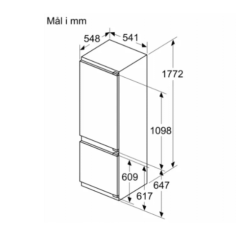 Bosch integrerbart køle-/fryseskab med 200 L kølerum og 70 L frostrum. Læs hele beskrivelsen