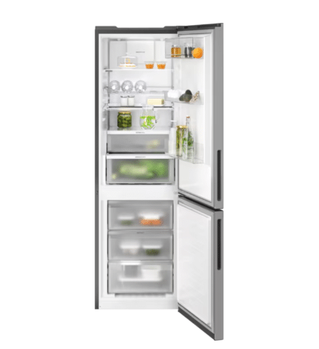 Stilrent køle-/fryseskab i rustfrit stål med NoFrost, stor kapacitet og lavt lydniveau – perfekt til det moderne køkken. Læs hele beskrivelsen