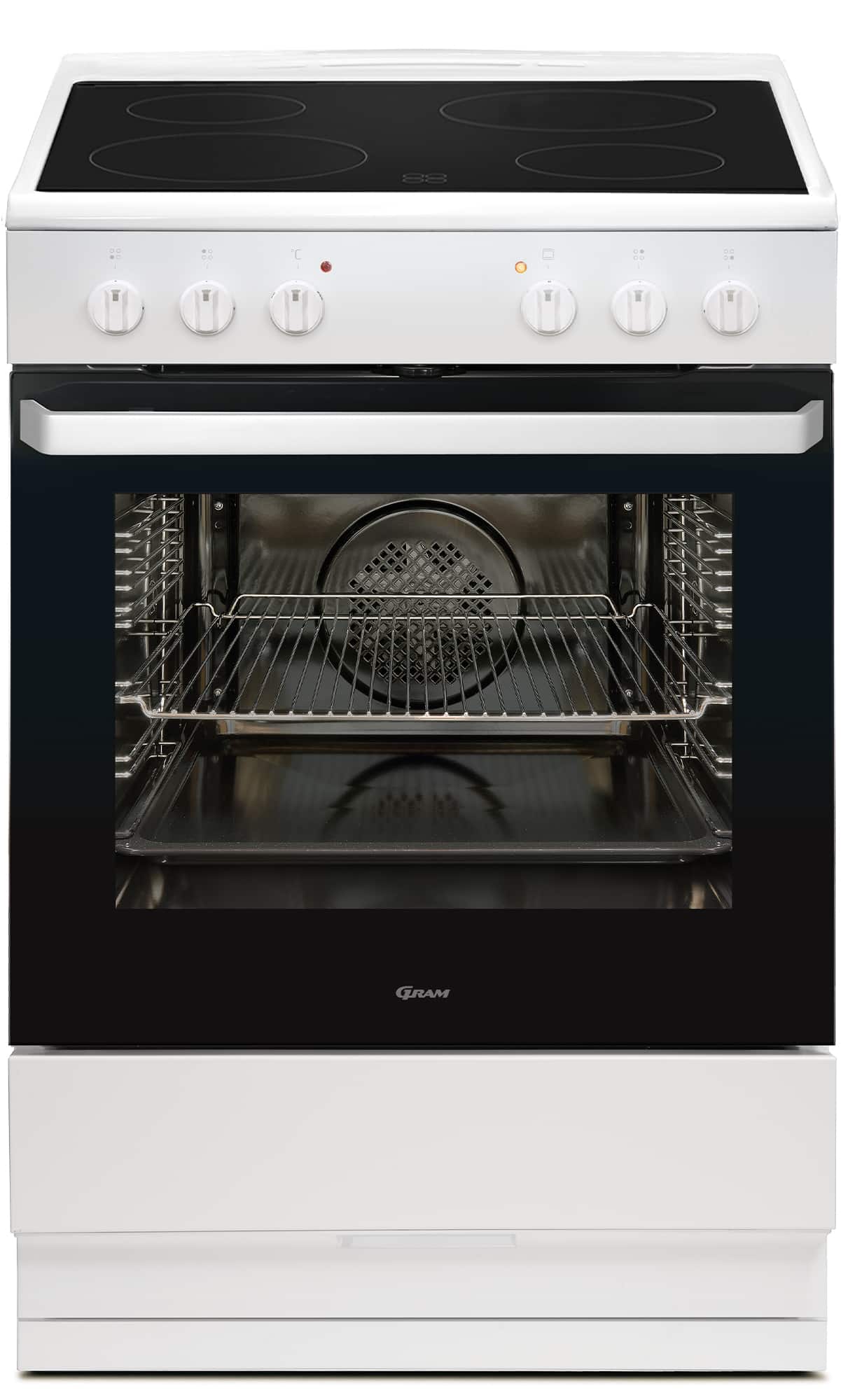 Gram induktionskomfur i hvid med multifunktionsovn med 11+1 funktioner, 4 induktionskogezoner med punktinduktion og booster på alle kogezoner. Læs hele beskrivelsen