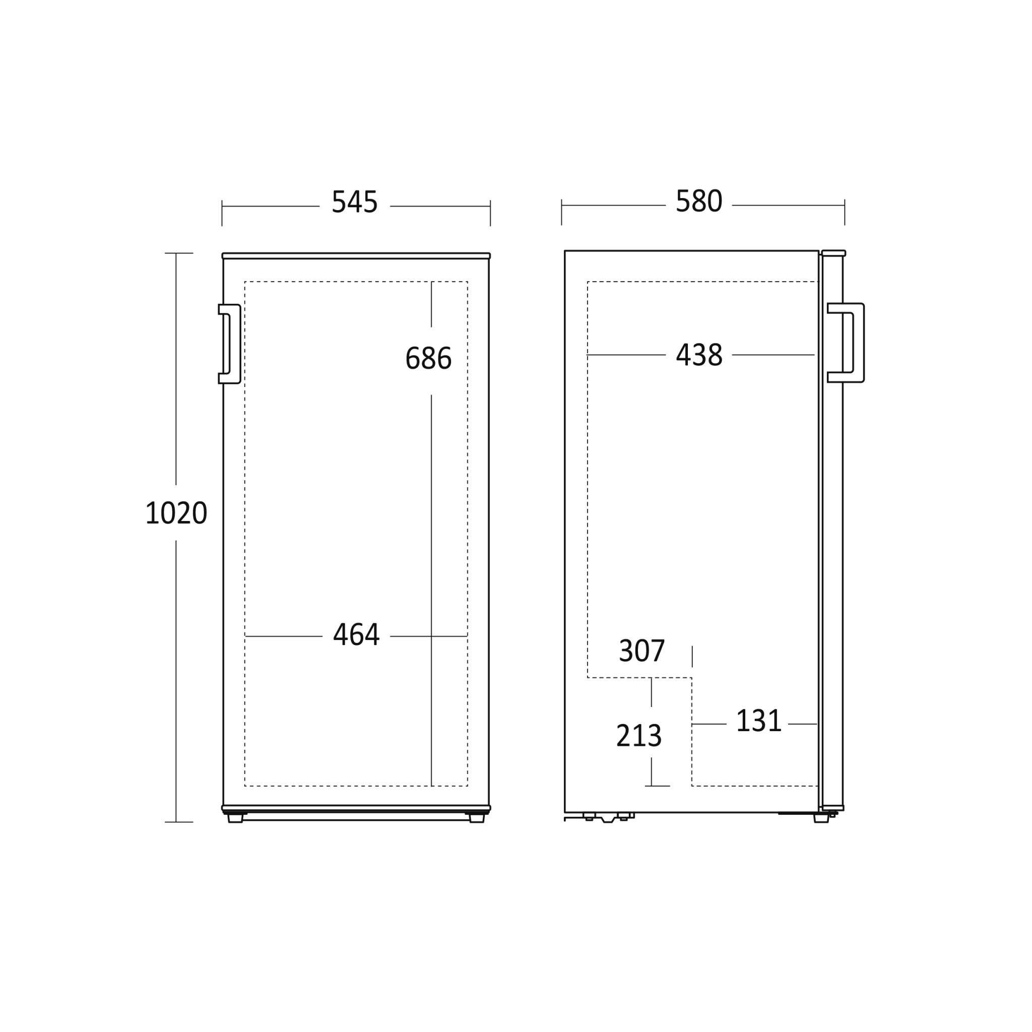 Temperaturen stilles på termostaten, placeret øverst inde i skabet. Det fritstående skab kommer med to hjul og to justerbare fødder i front som sikrer skabet står stabilt på de fleste underlag.
