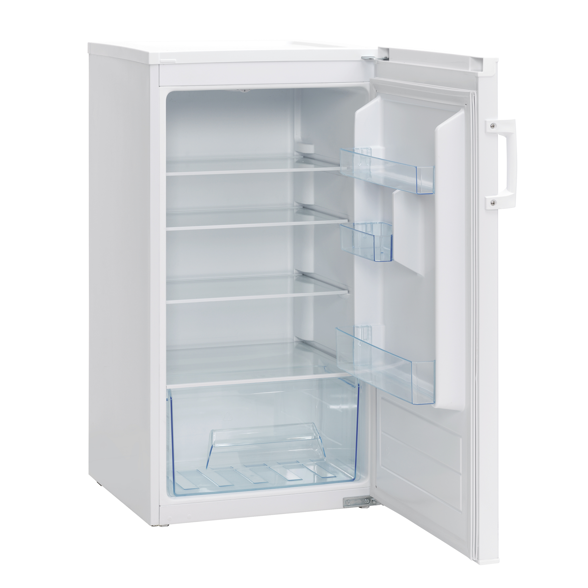 Skabet har hylder i sikkerhedsglas, der let kan tørres af. Glashylderne er yderst holdbare og brudsikre. Skulle uheldet alligevel være ude og der tabes en hylde på gulvet, så splintres den ikke i skarpe stykker. 3 hylder i dør, heraf 1 maxi hylde til 2L kartoner og flasker. Grønsagsskuffen er stor og med transparent front, som gør det nemt at se, hvad skuffen indeholder, hvilket kan være med til at nedbringe madspild.